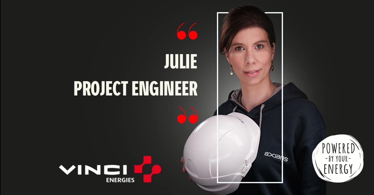 Julie Tavernier, 35 ans, travaille comme ingénieure de projet chez Axians. Elle réalise des projets techniques et est en contact avec différentes technologies au quotidien, ce qui lui assure des tâches variées.