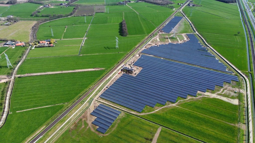Een stuk weiland van 20 hectare langs de Rijksweg A15, tussen de Betuwelijn en de spoorlijn Arnhem-Tiel: dat is waar IZEN in september 2022 in opdracht van Zonnepark Hemmen B.V. begon met de bouw van de installatie.